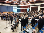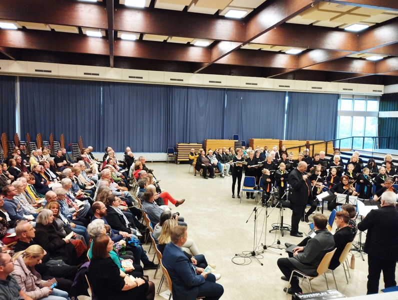Mehr als voll war die Bielsteiner Aula beim Präsentationskonzert des Projektes "Musik mit der Stimme entdecken", in dem alle Wiehler Erstklässler kostenfrei eine zusätzliche Musikstunde pro Woche durch Dozentinnen der Musikschule erhalten. Die einzelnen Schulen sowie die Chöre der Chorakademie der Musikschule sangen je 2 Lieder und begeisterten damit das Publikum. Geleitet wurden sie von Ihren jeweiligen Dozentinnen Mira Caputo, Regine Melzer, Rita Oberschachtsiek und Luisa Schwunk. Höhepunkt waren die gemeinsam gesungenen Lieder zu Beginn und zum Schluss der Veranstaltung. Bürgermeister Ulrich Stücker stellte das Projekt vor, das mittlerweile seit 14 Jahren läuft und von der Bürgerstiftung Wiehler Kulturgüter finanziert wird. Mittlerweile seien 170000 Euro für dieses so wertvolle Projekt bereitgestellt worden. Herr Stücker überreichte Musikschulleiter Dr. Dirk van Betteray, der die Lieder am Klavier begleitete, einen Scheck über 1000€. Dies war der Erlös der Spendenaktion beim Frühjahrsempfang der Stadt Wiehl für die Musikschule, die in diesem Jahr seit 45 Jahren besteht. Hoffen wir, dass dieses Projekt noch möglichst lange weitergeführt werden kann!